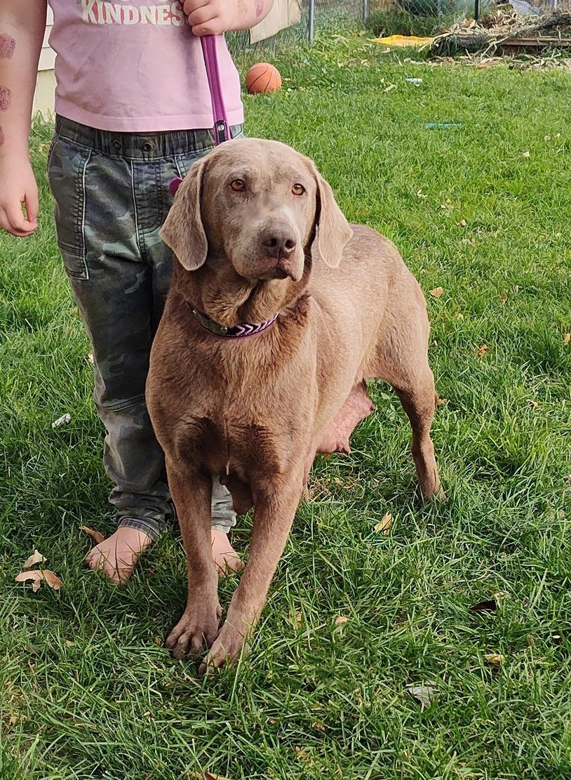 Gemma is 65lb Silver Labrador Retrievers . She is a big girl! Very blocky! Gemma points/sets on birds and has an excellent nose! she is GREAT with kids and willing to please very sweet and love people!